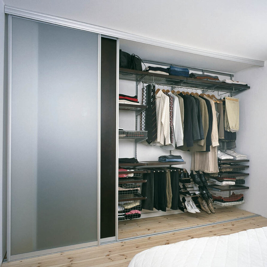 раздвижных дверей и наполнения от Elfa, а стены будут являться боковинами шкафа. Такое решение экономит место, эстетично выглядит и прекрасно впишется в любой интерьер.